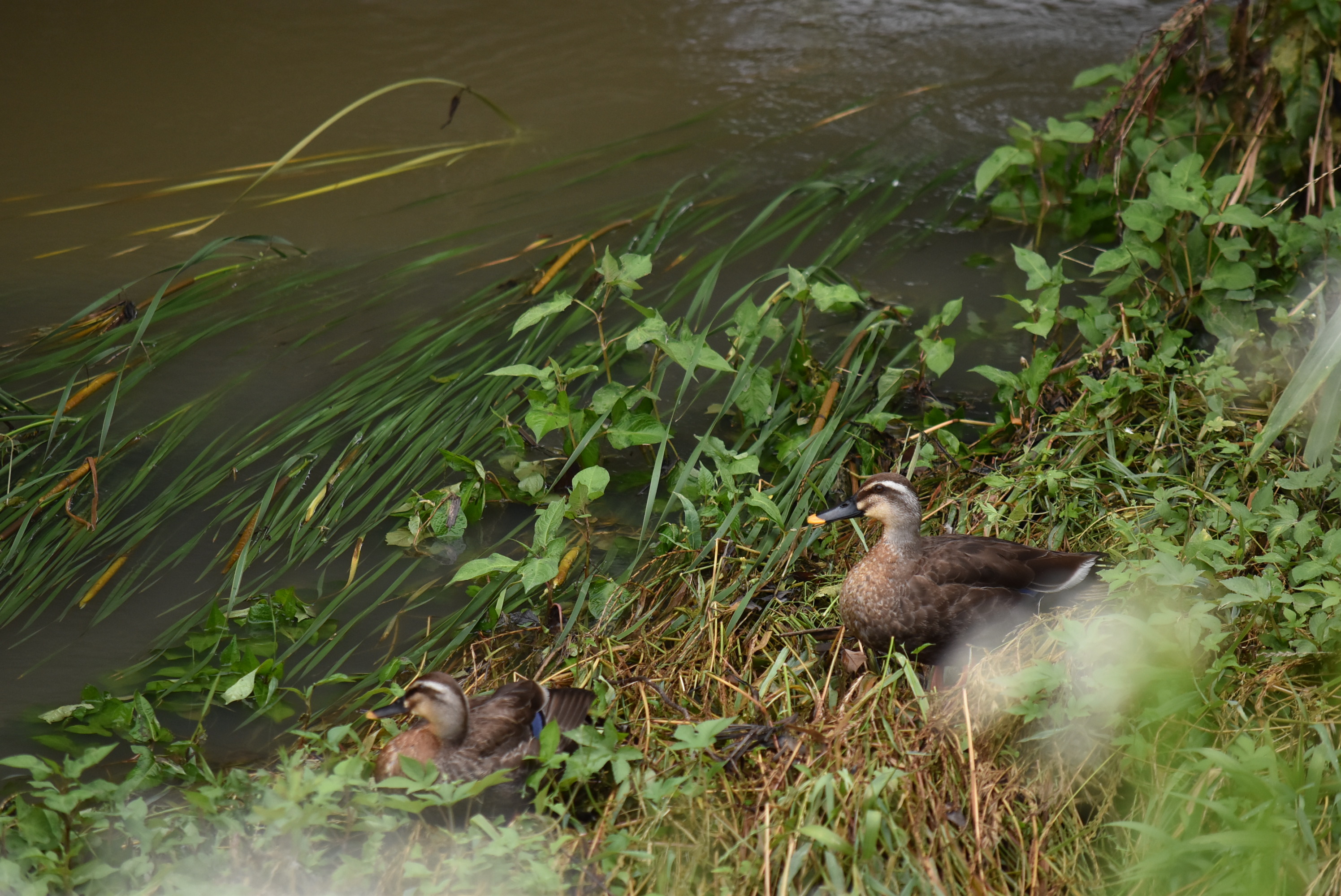 昨夜からの雨で水かさが増し、観音さんの池から流れてきたのかな?