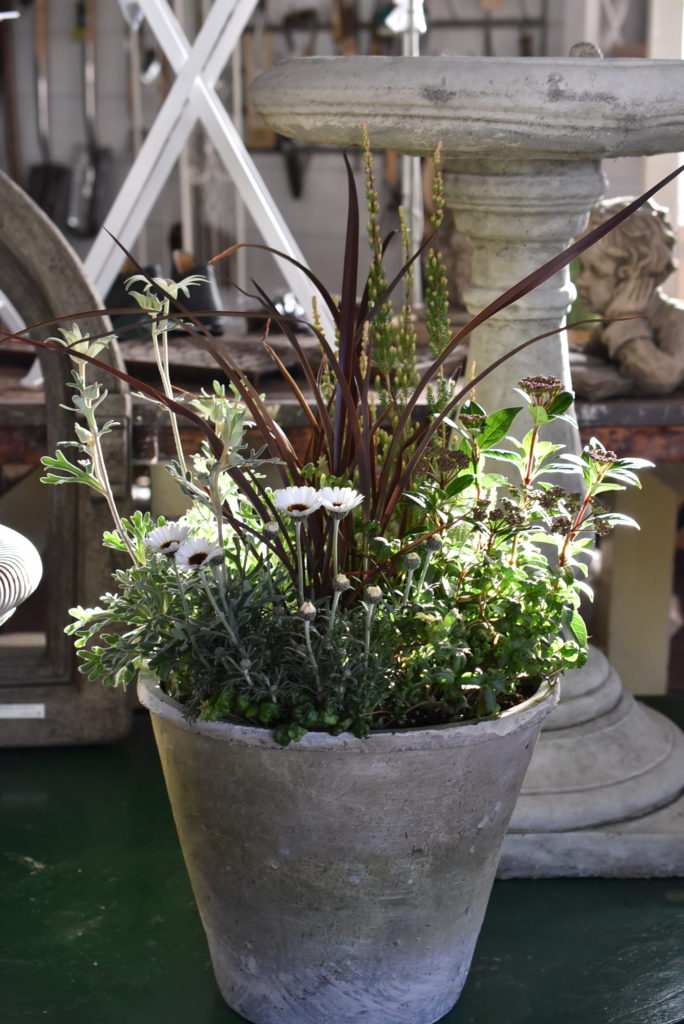 鉢によって選ぶお花は変わってきますが、白いモスポットは雰囲気があり